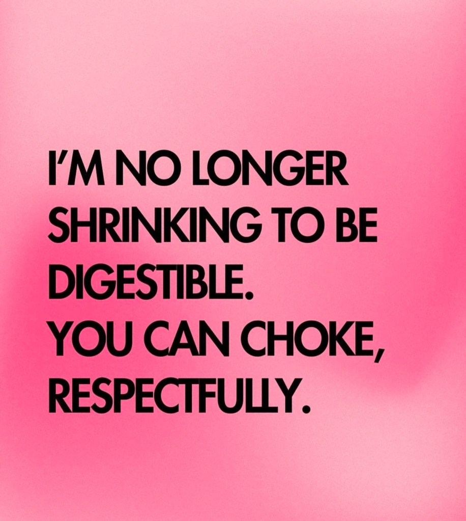 “I am no longer shrinking to be digestible. You can choke, respectfully.”
