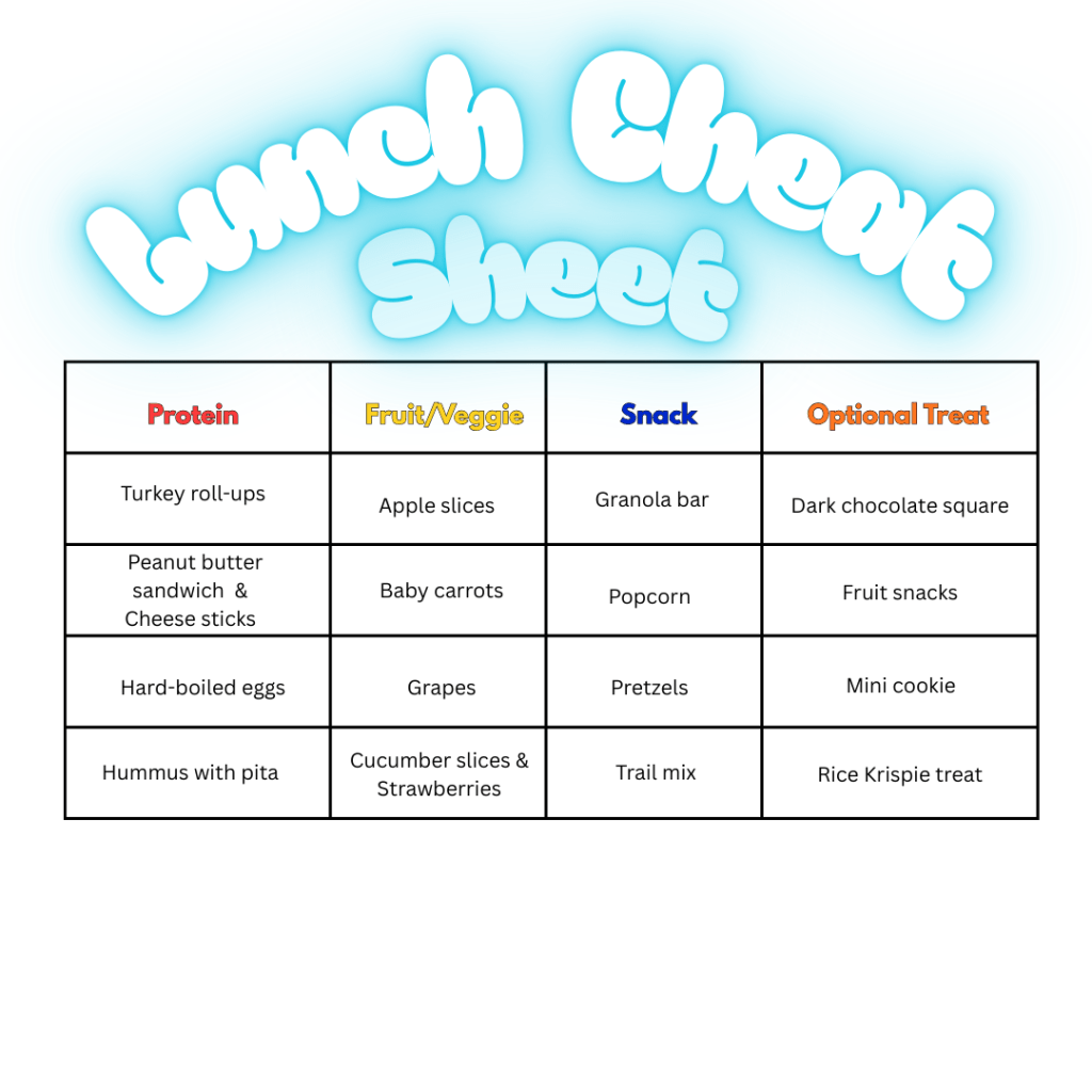 Lunches made easy: Instead of stressing over creative, Pinterest-worthy meals, stick to a simple formula: 1 protein + 1 fruit/veggie + 1 snack + 1 optional treat. Set up bins in the fridge and pantry so kids can grab their own choices within that framework. It gives them a sense of independence, saves you time, and ensures they’re fed and fueled without the overthinking. Remember—the goal is nourishment, not perfection.